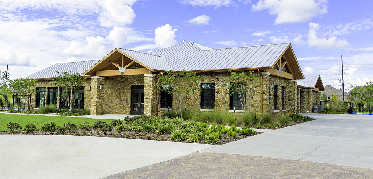 Located at the corner of Allegro Drive and Rayford Road, The Thicket features a splash pad, shady playground, open lawn and a 5,100-square-foot recreation center with exercise room, meeting room and great room for events. On-site parking is available.